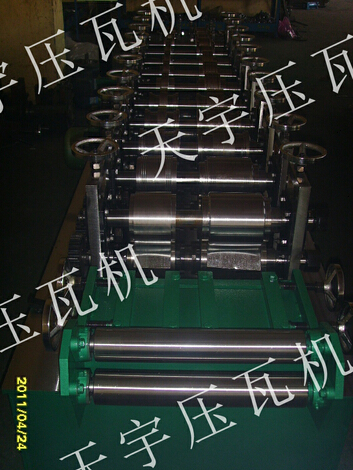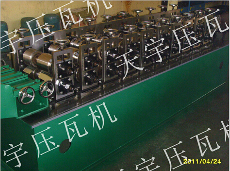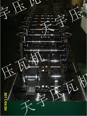 各型號(hào)機(jī)組龍骨機(jī)上調(diào)換不同規(guī)格的軋輥能軋制出不同規(guī)格的型材,龍骨機(jī)機(jī)組一般后用卷料(帶鋼)按型材的展開(kāi)縱剪后如:普碳鋼卷帶、黑色鋼卷帶、不銹鋼帶通過(guò)多對(duì)軋輥連續(xù)輥壓一次成型各種型材。