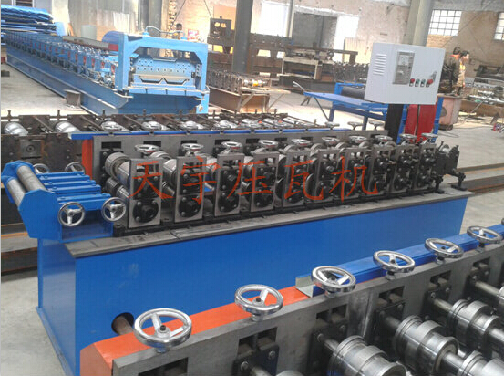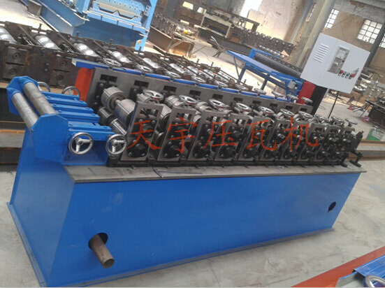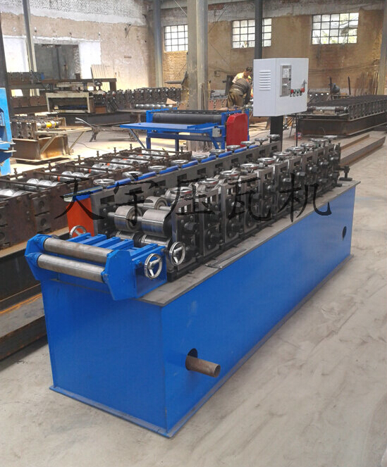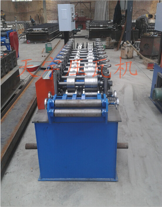 各型號(hào)機(jī)組龍骨機(jī)上調(diào)換不同規(guī)格的軋輥能軋制出不同規(guī)格的型材,龍骨機(jī)機(jī)組一般后用卷料(帶鋼)按型材的展開(kāi)縱剪后如:普碳鋼卷帶、黑色鋼卷帶、不銹鋼帶通過(guò)多對(duì)軋輥連續(xù)輥壓一次成型各種型材。一機(jī)多用,自動(dòng)定尺型材長(zhǎng)度,切斷。