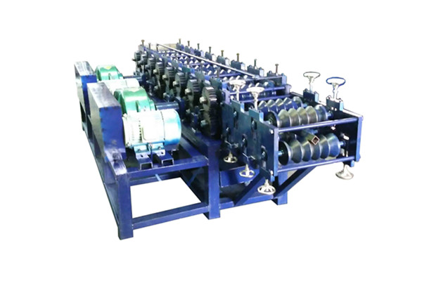 成型排數(shù):10排 輥輪材質(zhì):CR12 中板厚度18mm 輥軸直徑80mm 機架規(guī)格300H鋼 壓制厚度2-3mm 傳動方式 1.5寸 鏈條傳動 電機功率11KW 速度每分鐘10米